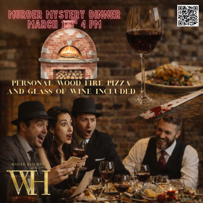 Step into a night of suspense, secrets, and scandal at Wolfe Heights. On Friday, March 13th, we’re teaming up with The Murder Mystery Company for an immersive, themed murder mystery dinner experience that puts you right in the middle of the action.