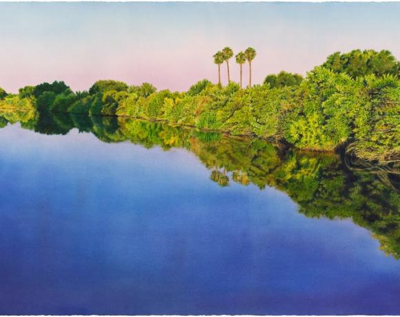 Elaine Bowers made art as soon as she could hold a pencil. She worked as a graphic designer and art therapist while polishing her craft in watercolors, painting in a photo-realistic style. She loved the colors and textures of California’s landscape as observed from a plane. She photographed from a small plane and then painted her observations in her studio.