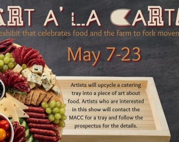 Mills Station Arts & Cultural Center (M.A.C.C.) is pleased to host 'Art A' La Carte' Art A' La Carte is an inventive art exhibition that celebrates the deep roots of the Farm-to-Fork movement through a unique and restrictive medium. The show tasks artists with transforming upcycled wooden catering trays into intricate works of art centered on themes of food, agriculture, and culinary culture. This 2026 exhibit, which features Maddison Dunn as the spotlight artist, offers a creative visual exploration of the region's agricultural identity, inviting visitors to rethink the journey from farm to plate through a series of "boxed" masterpieces.