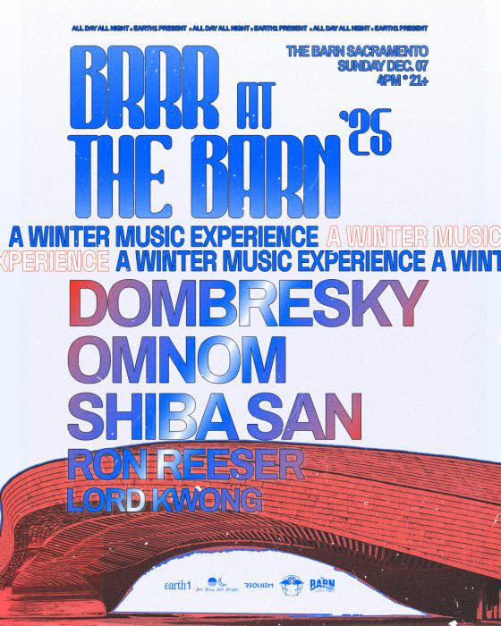 The second annual BRRR AT THE BARN on back in Sacramento on 12/7 featuring DOMBRESKY, OMNOM, SHIBA SAN, Ron Reeser, and Lord Kwong. This special Winter Music experience will be our 2025 closing show at The Barn. It's been an insane year at this incredible venue, let'd end the season in a big way!