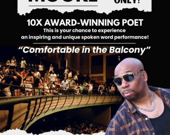 Saturday, November 29, 2025, from 8pm to 9:30pm, Terry Moore, for one night only! 10x award-winning poet performing with live band LSB and special guests! “Comfortable in the Balcony” is a must attend full show! This is your chance to experience an inspiring and unique spoken word performance about being comfortable with who you are and where you are always! This will not be just another poetry night; this will be an unexpected great experience! In fact, most people have never seen or imagined a spoken word show with this much excitement with messages that are extremely necessary for today's times.