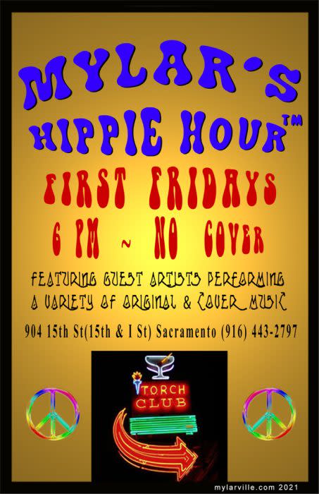 Mylar's Hippie Hour, a Sacramento area staple since 2011, features William Mylar performing a variety of original and cover music arranged so each show is unique. No two shows have ever been the same and include some of the finest guest musicians, both local and from around the world. There is never a cover charge and free munchies are provided. A true free-form and improvisational experience every first Friday at The Torch Club.