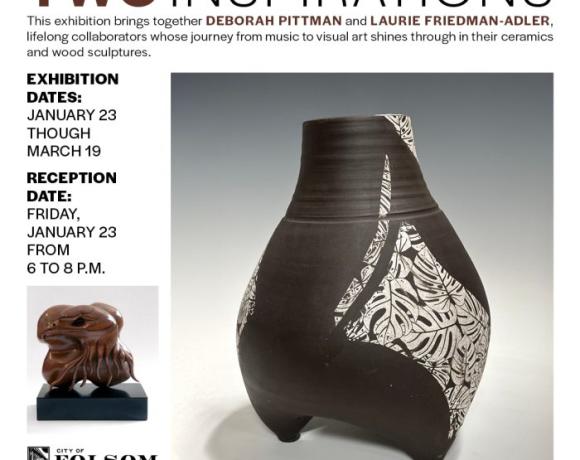 Join us for the opening reception on Friday, January 23, from 6–8 p.m., celebrating Two Inspirations, a compelling exhibition featuring the work of artists Deborah Pittman and Laurie Friedman-Adler. The reception is free and open to the public, with light refreshments and live music in partnership with the Folsom Arts Association.