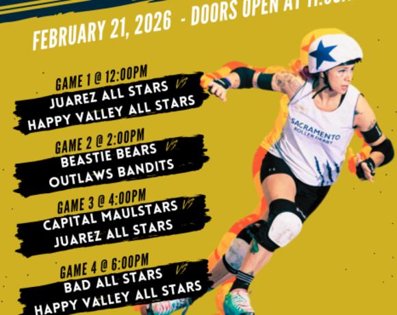Please join Sacramento Roller Derby for our season opener on February 21, 2026. We are hosting a quad header which includes four roller derby bouts, three with adults and one with our juniors (youths). Roller derby is a fast-paced, full-contact sport played on quad roller skates. Each game is two, 30-minute periods comprised of two minutes plays, or "jams". RULES: https://www.youtube.com/watch?v=OId6gTd2LCM