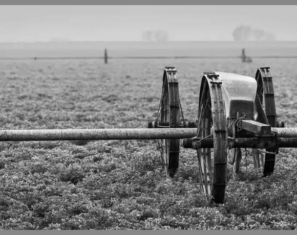 As the first child of the first generation in my family to leave farming, the stories of my relatives’ struggles and successes running small dairy farms in Connecticut form a kind of personal folklore. When I visit, we still take my mother and aunt on drives to see how the old small farms are holding up—or not. So when I relocated to Davis and the Central Valley five years ago, the sheer scale of agriculture was striking. The ingenuity, infrastructure, and effort on display here contrast sharply with how the Valley’s naturallandscape has been transformed. For the past five years I’ve used black-and-white photography as a way of understanding this complicated place. These photographsreflect on our region’s agriculture, which both sustains communities and redefines the landscape. Its reach is at once nourishing and disruptive, leaving patterns that are practical, visible, and persistent. My work seeks to hold these tensions—to witness not onlywhat agriculture provides but also the marks it leaves behind.