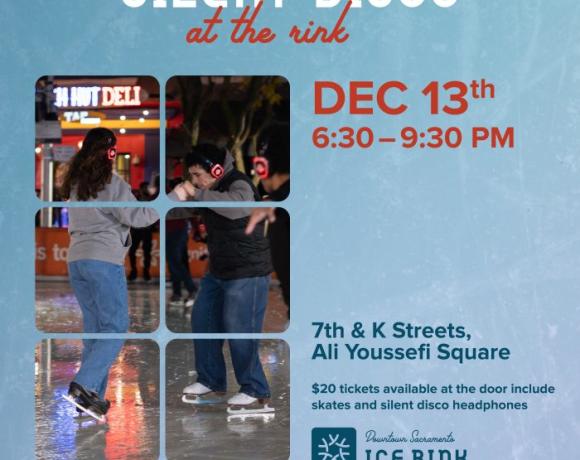 Skaters are invited to the Downtown Sacramento Ice Rink for an Ugly Holiday Sweater Party, and you know it’s not a party without some silent disco! We’ll be having 3 DJs on site spinning your favorite jams. Headphones will be provided to all skaters for an additional $5, who then can choose one of three stations to skate to.