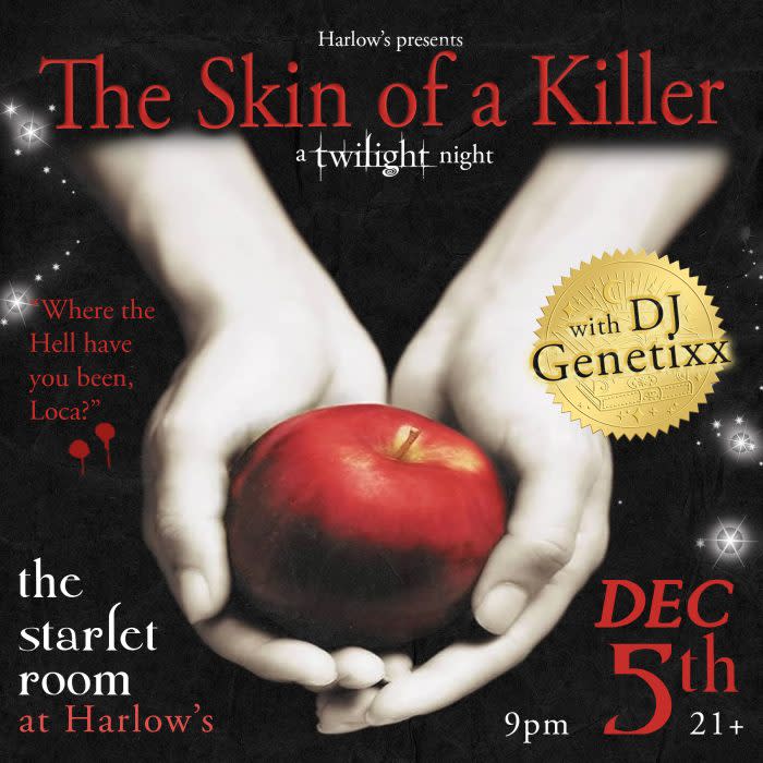 Where the Hell have you been, Loca? Celebrate the Twilight 20th Anniversary at The Skin of a Killer with sounds by DJ Genetixx, featuring songs from the Twilight soundtracks, indie hits from The Twilight Saga era, and winter vibes