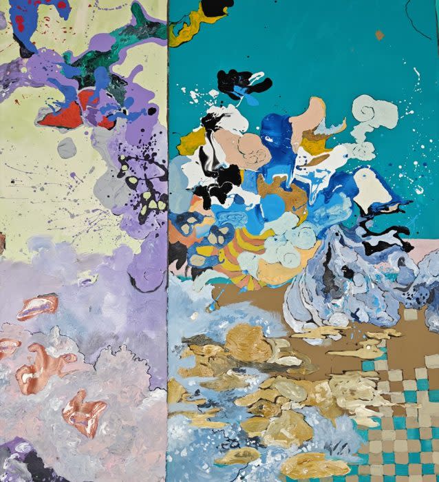 “The Winters where Catfish Sings” is a solo exhibition by Sokthea Chan that introduces a body of work inspired by the natural world, mythological stories, and poetry. The title of the exhibition draws its inspiration from cultural folklore that gives slight humor and sorrow to let the viewers to wonder and question its silly and bizarre name in relation to the work. Sokthea believes as living beings, tiny moments in a person' s day are sometimes lost or forgotten where he hopes to share his works giving perspectives on the significance for individuals’ growth and journey to discovering their identities in the contemporary world. Through the playfulness of automatic drawing, choice of bold colors, ambiguity, patterns, and dense layering of materials in his large-scale works, Sokthea offers the viewer the consciousness of being present, discoveries within their surroundings, and the human experience of daily life. ABOUT THE ARTIST Sokthea Chan is a Cambodian American artist that resides in Sacramento, California. Since a child, he would find enjoyment through painting and drawing as it led him to becoming an educator to teach and inspire others in the surrounding community. He attended Sacramento State University and earned his Bachelor’s degree in art studio in 2014 followed by his teaching credential in 2016. After teaching for 9 years, Sokthea returned to his studies to work towards his Master of Fine Arts degree at CSUS completed in Spring of 2025. He is now a working artist who strives to challenge what can be seen as art in today's world through uncommon materials and experimental methodologies. Instagram @soktheathavychan