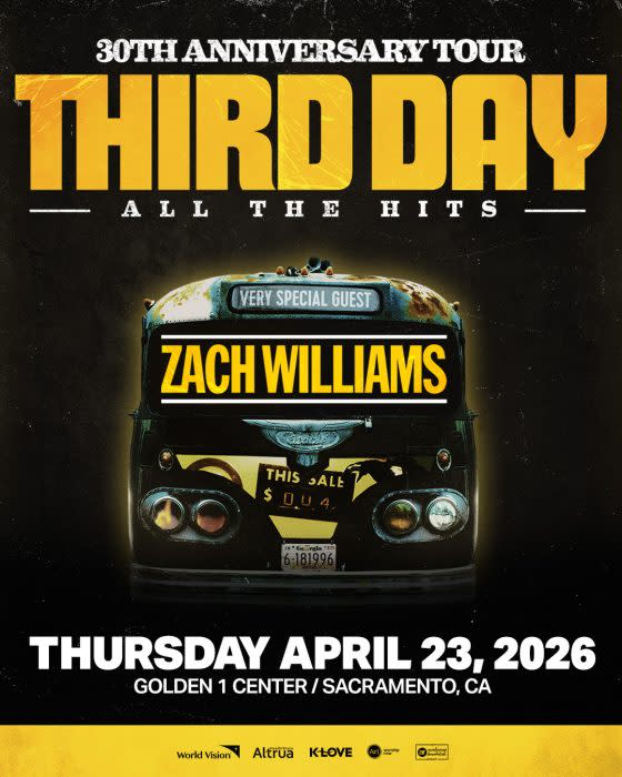 Experience the iconic band that shaped Christian music — Third Day — as they reunite for their 30th Anniversary Tour. For the first time in over a decade, original members Mac Powell, Mark Lee, David Carr, and Tai Anderson will hit the stage together for a limited number of live shows across the U.S. Celebrating three decades of unforgettable hits, this once-in-a-lifetime tour will feature the band’s classic songs, pulling from their legendary catalog of chart-topping singles. Special guest Zach Williams will join the tour, adding his soulful hits to the night.