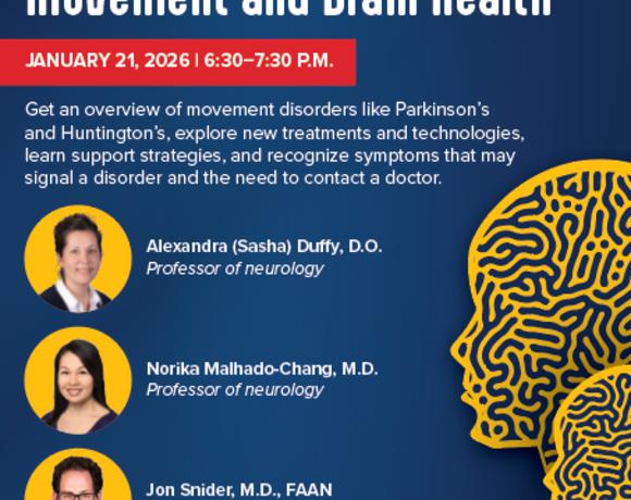 Nationally recognized experts in movement disorders will discuss neurological conditions that affect movement, when to seek care, and how multidisciplinary care is the most excellent patient practice.