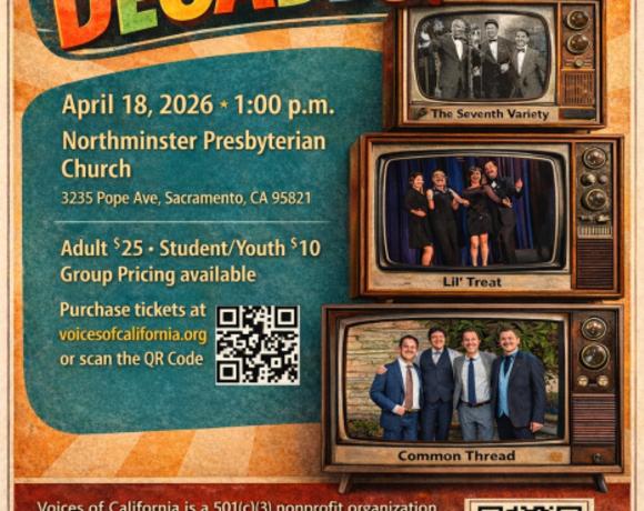 The Voices of California will sing songs of Television Shows that are sure to make you smile and tap your feet.