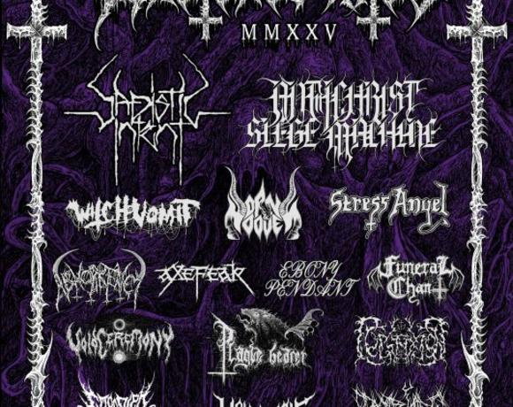 Two-day metal festival in Sacramento, California. SATURDAY: Sadistic Intent Witch Vomit Horns & Hooves Abhorrency Primitive Warfare Caveman Cult Plague Bearer Civerous Pig’s Blood Vaulderie SUNDAY: Antichrist Siege Machine Abymsal Lord Stress Angel Ebony Pendant Lucifixion Void Ceremony Funeral Chant Warp Chamber Embodied Torment Deiphage